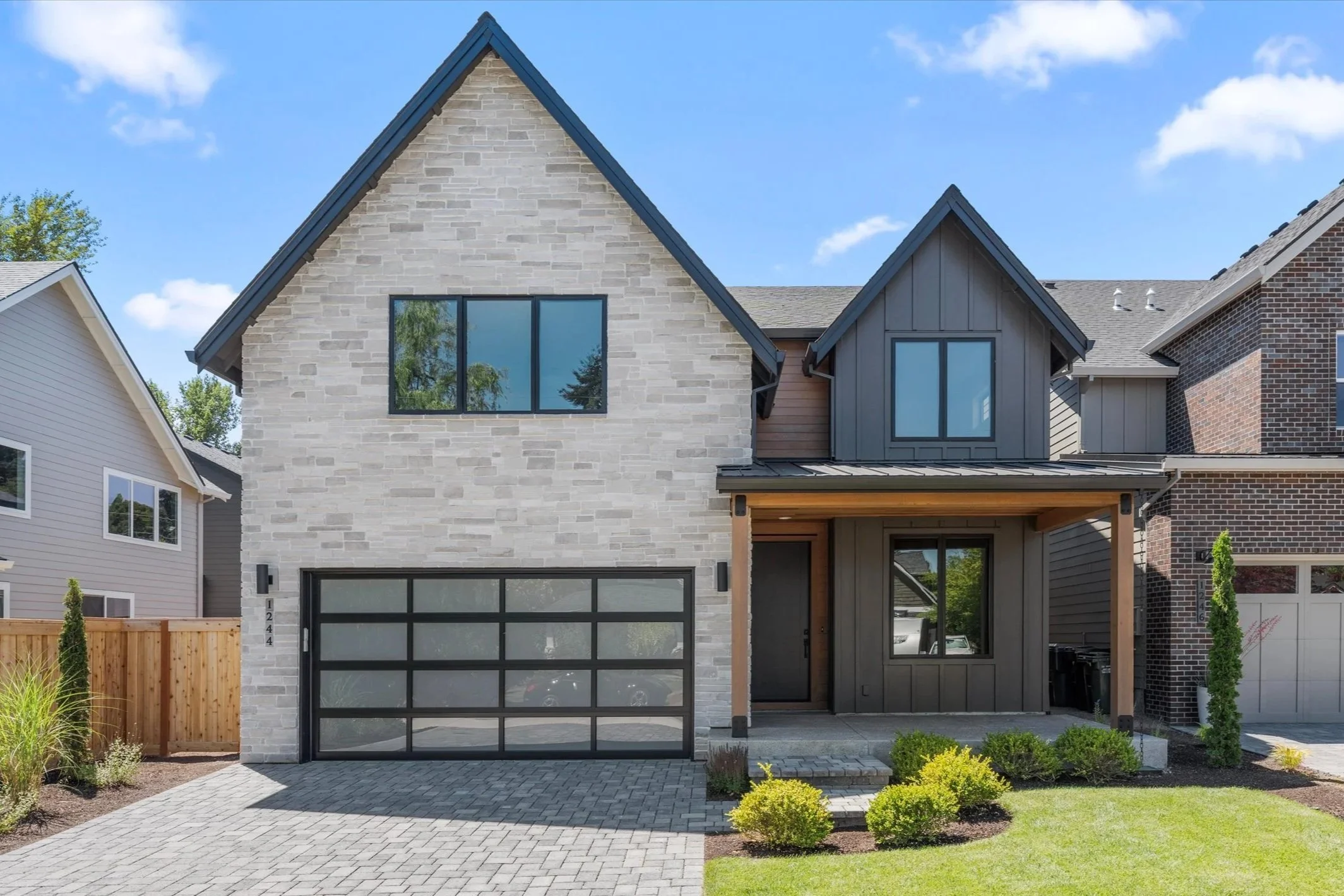 Classic craftsman roots meet modern refinement through a palette of matte blacks, white oak, and soft neutrals—bringing quiet sophistication to a home that remains warm and approachable.
